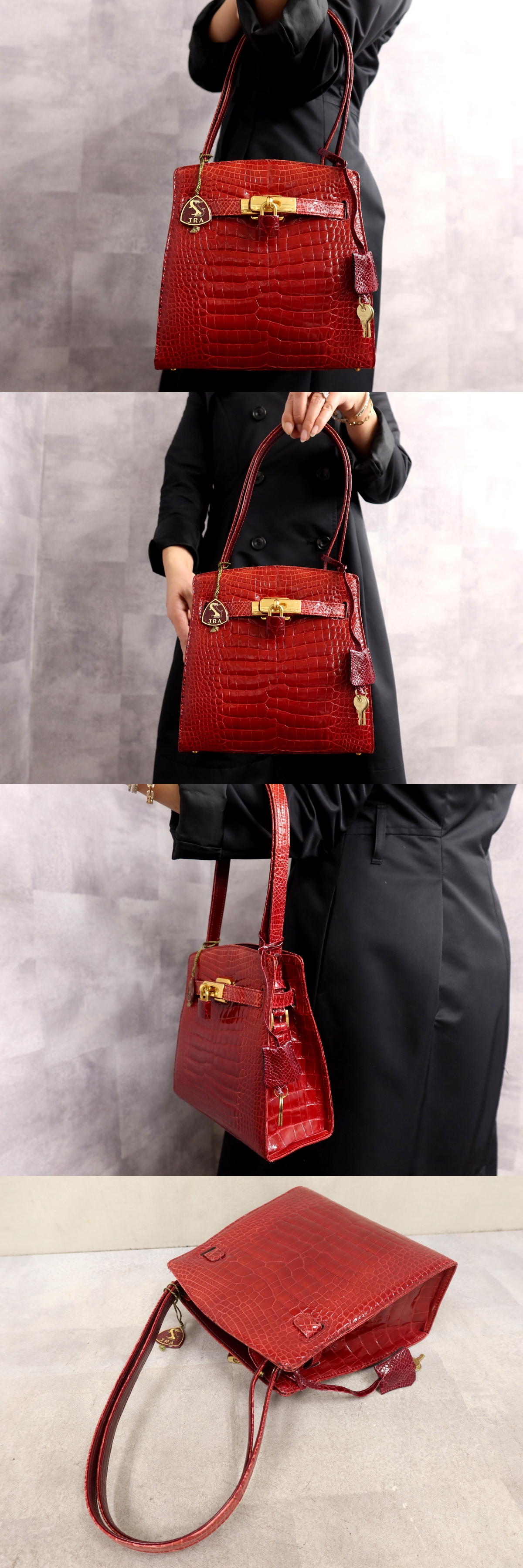 Product name: ●超美品●JRA 認定●シャイニング クロコダイル 本 ワニ 革●ハンド ショルダー バッグ●赤●ゴールド金具●腕掛け●収納 かばん●Js64370