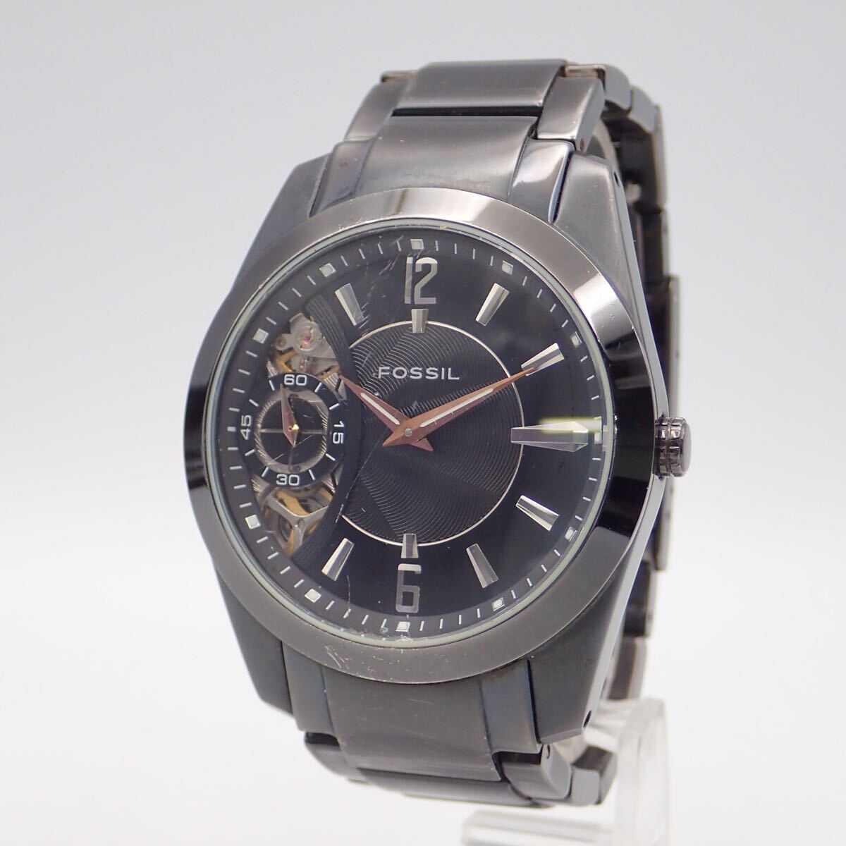 お09306 稼動品 FOSSIL フォッシル TWIST ツイスト ME-1001 ガンメタル スケルトン