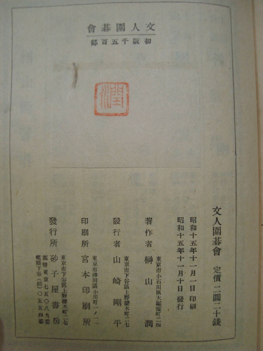 Product name: 珍品希少本「榊山潤 随筆集【文人囲碁会】紙ケース入り 昭和45年 初版 砂子屋書房刊行」初版1.500部