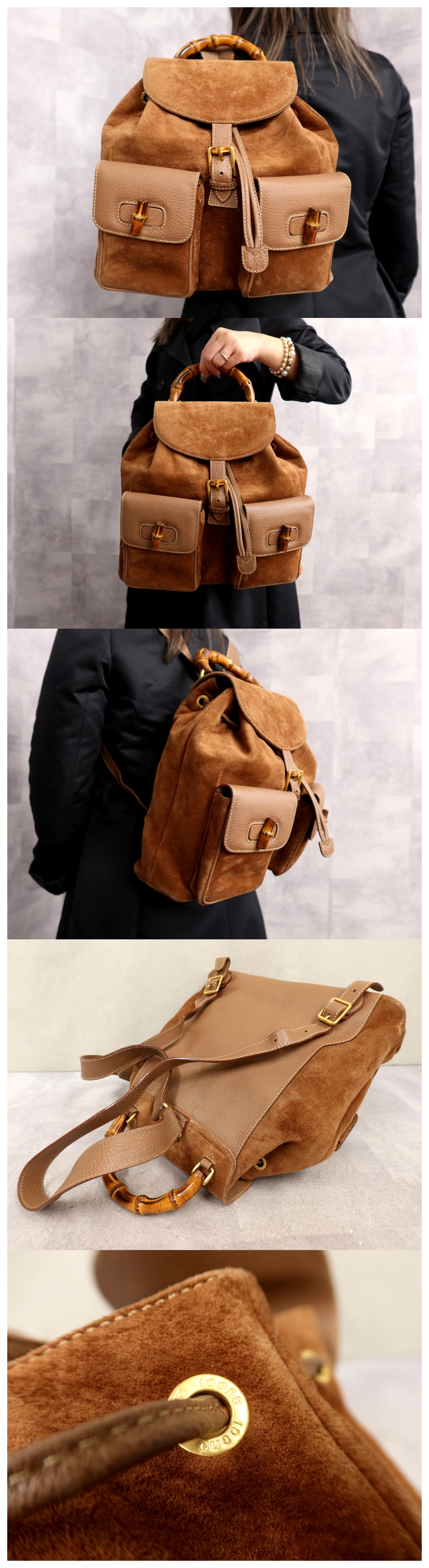 Product name: ●超美品●GUCCI グッチ●バンブー●スエード カーフ レザー 本革●リュックサック●ブラウン●ゴールド金具●イタリア製●B5●Js64557