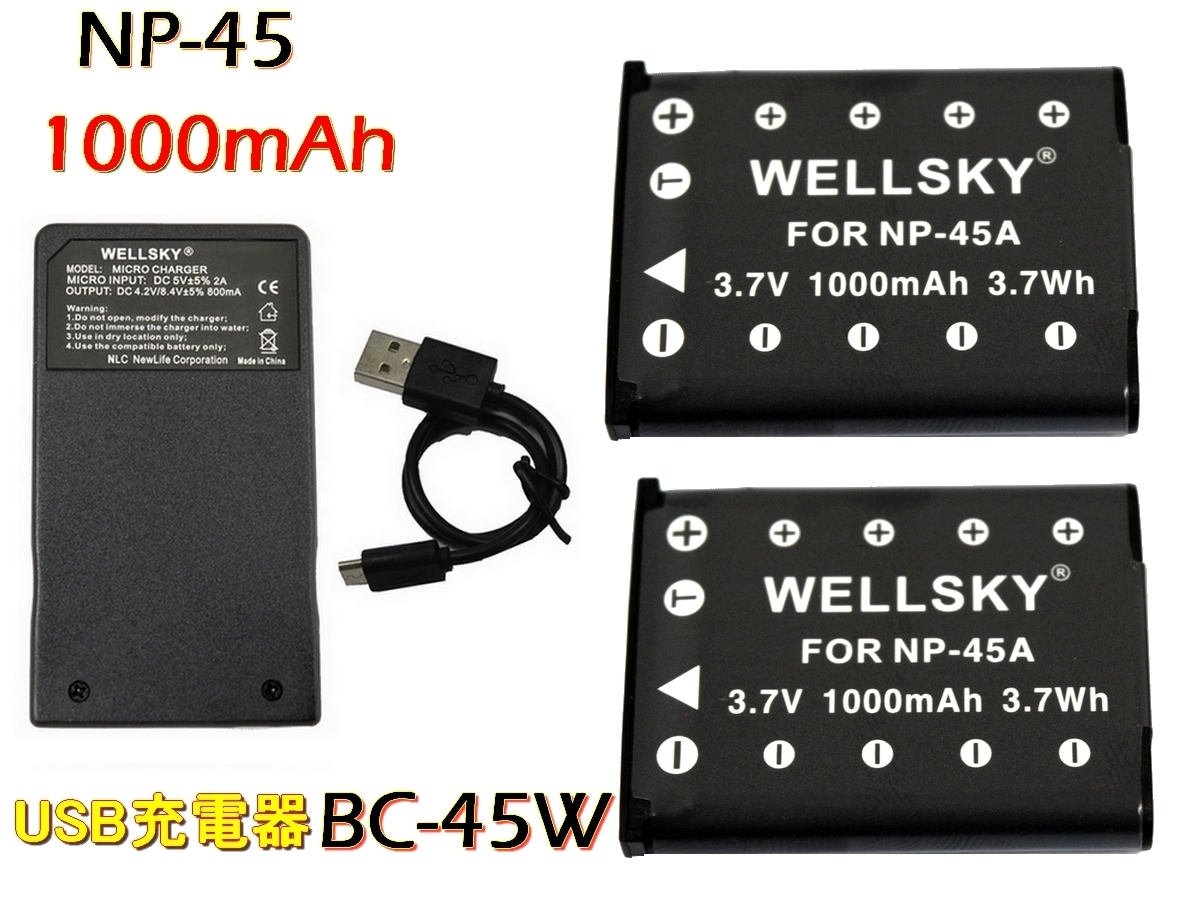 Product name: NP-45S [新品] NP-45A / NP-45B / NP-45 / LI-42B / LI-40B / D-LI63 / EN-EL10 / NP-80 互換バッテリー 2個 + USB 互換充電器 BC-45W 1個