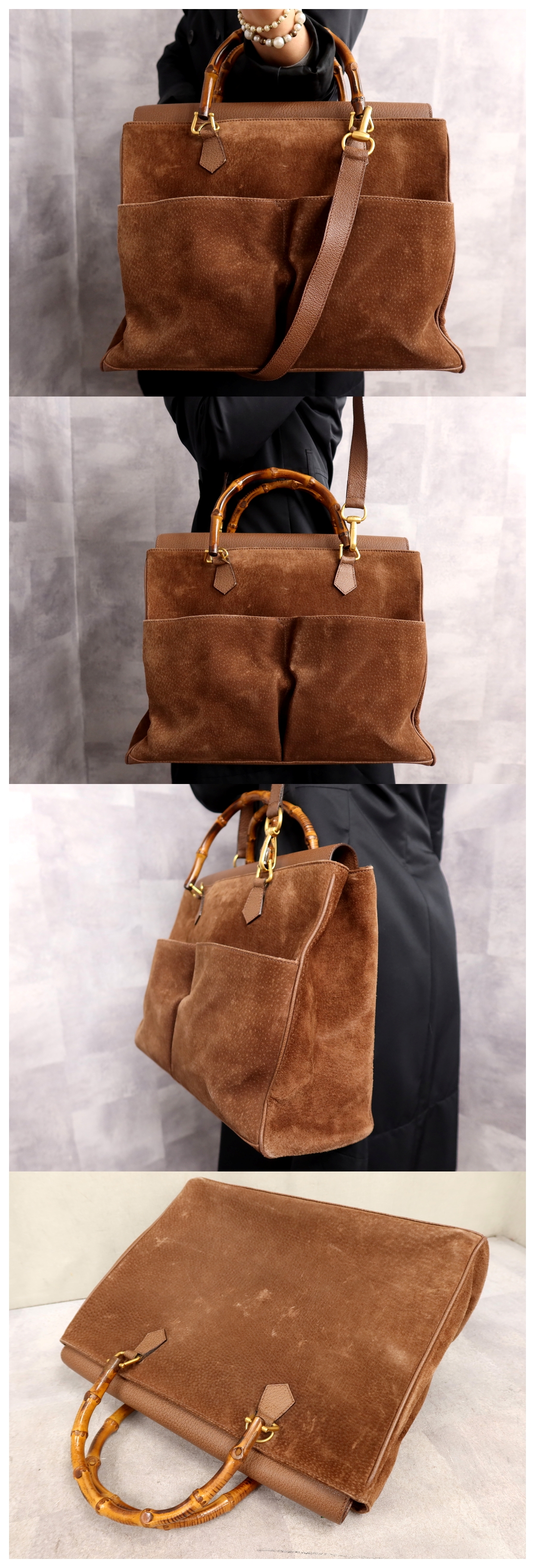 Store ●超美品●GUCCI グッチ●バンブー●スエード カーフ レザー 本革●2way ハンド バッグ●ブラウン●G金具●イタリア製●A4 収納●Js64473