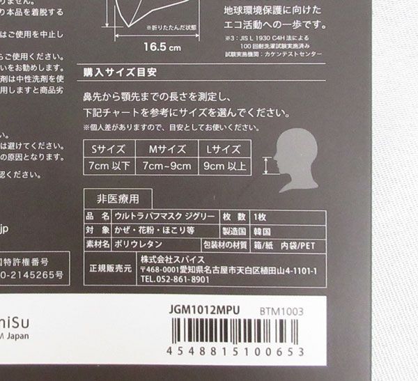 内 容 ■スパイス JIGGLY 大人用ウルトラパフマスク Mサイズ