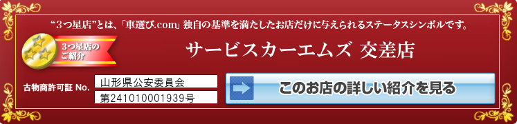“3つ星店”とは「車選びドットコム」独自の基準を満たした販売店だけに与えられるステータスシンボルです。