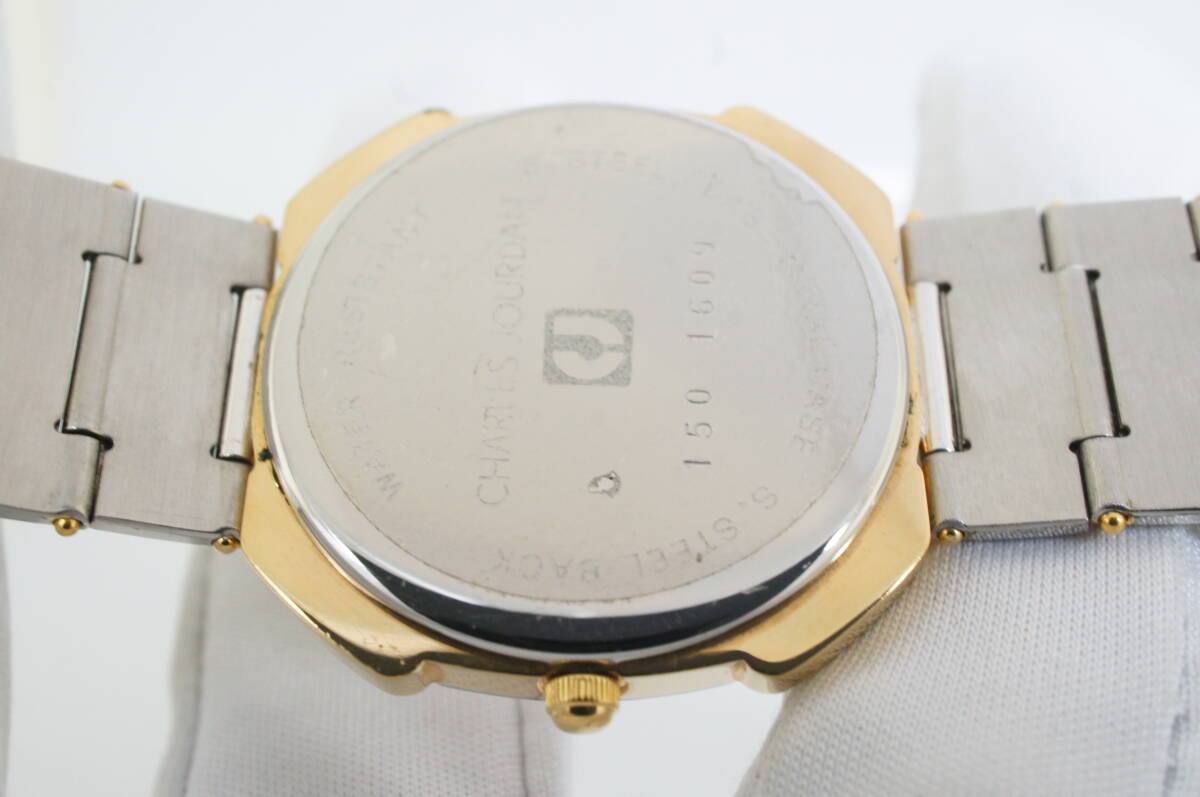 J177●作動良好 CHARLES JOURDAN シャルルジョルダン スイス製 白文字盤 ローマン数字 デイト メンズ腕時計 コンビ お洒落 クォーツ