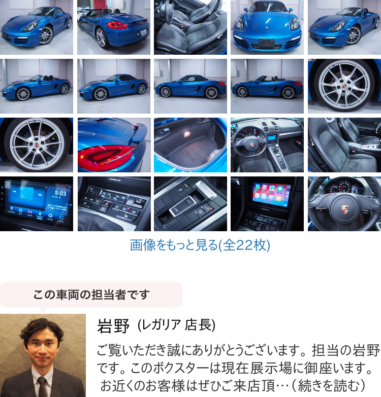 Product name: 返金保証付:ボクスター 2.7 左H・6MT・アップルカープレイ・カレラS20inホイール