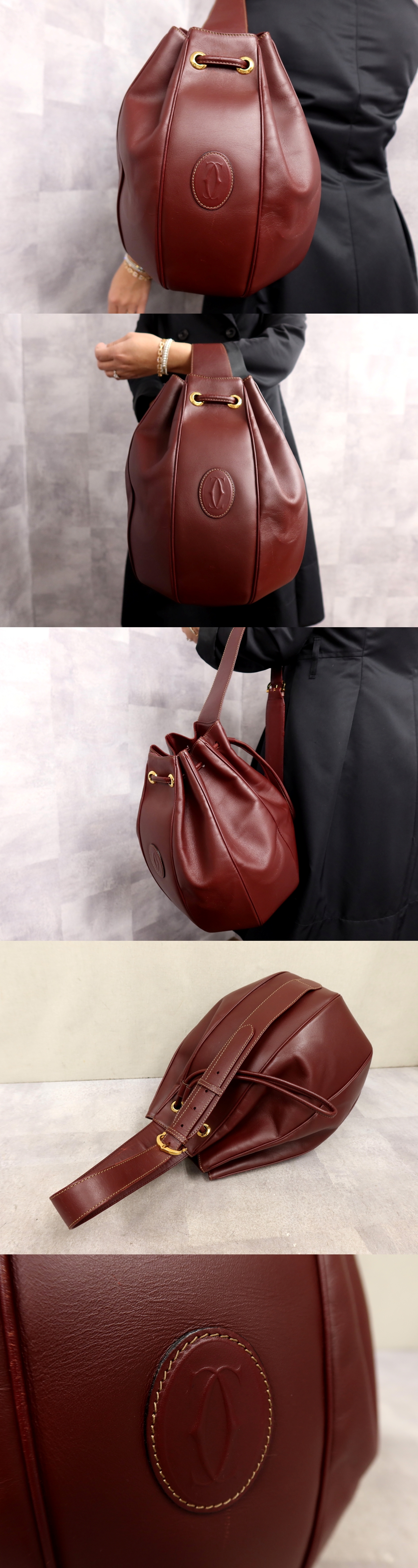 Store ●超美品●Cartier カルティエ●マスト●カーフ レザー 本革●巾着 ショルダー バッグ●ボルドー●ゴールド金具●ヴィンテージ●Js64355