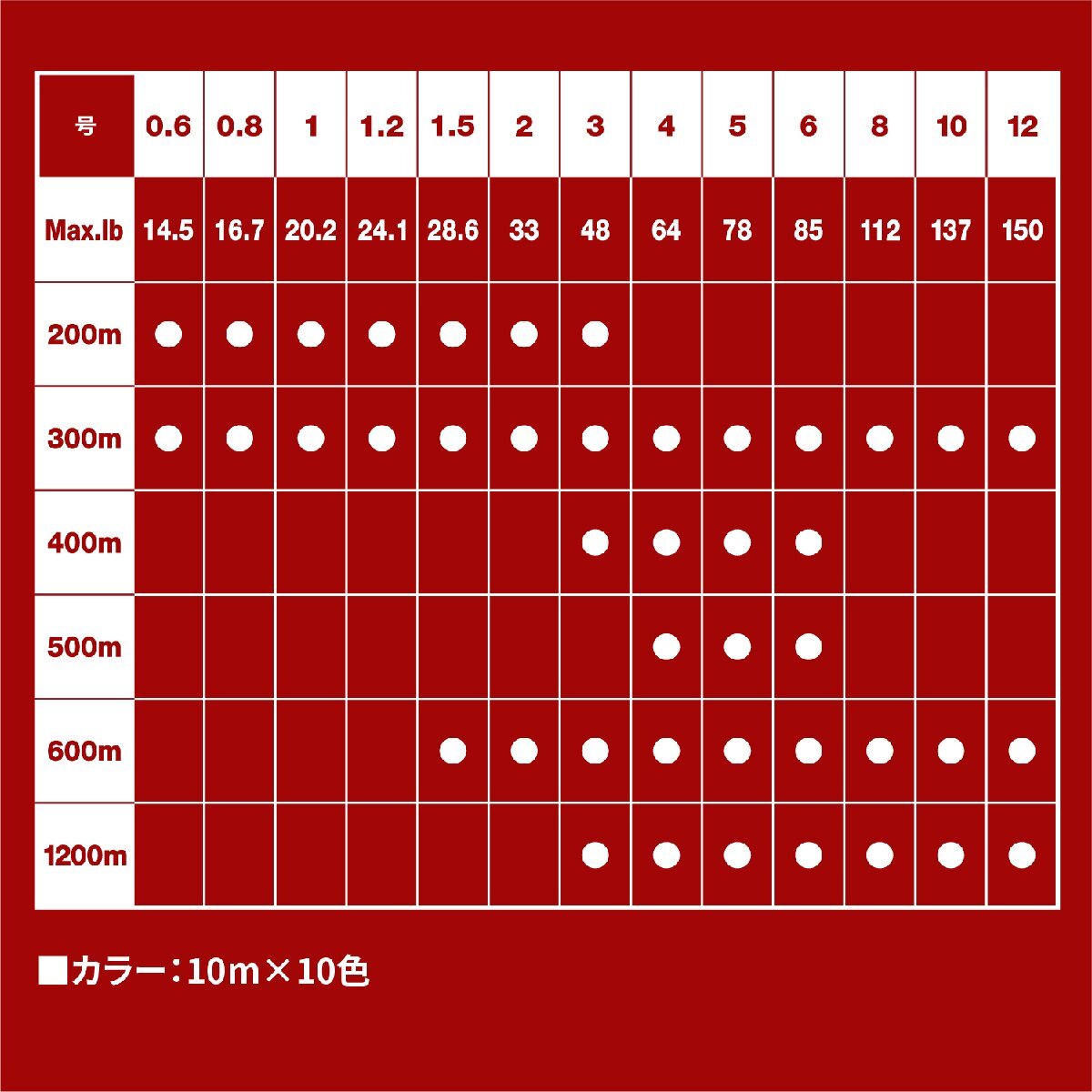 VARIVAS独自の10m×10色、ジギング専用ライン。