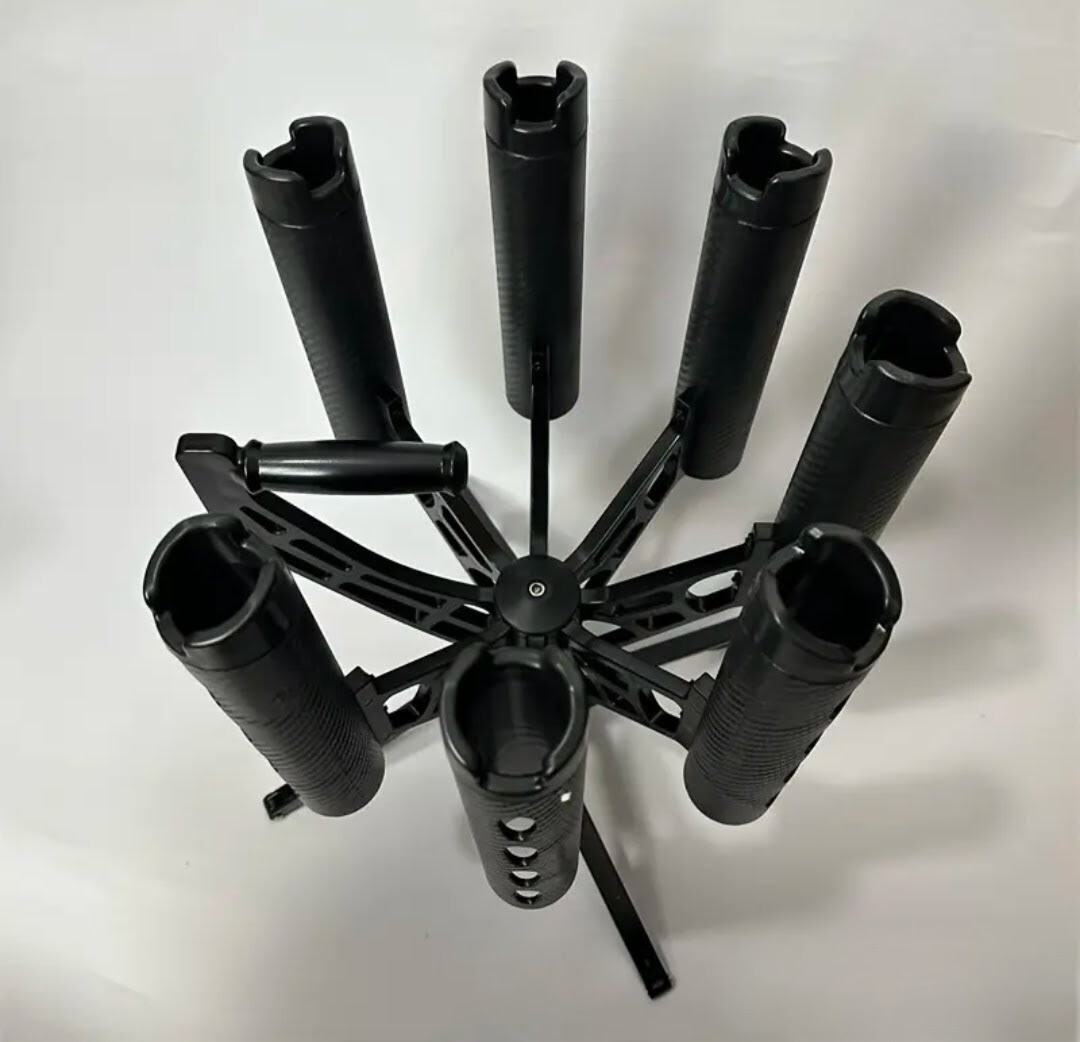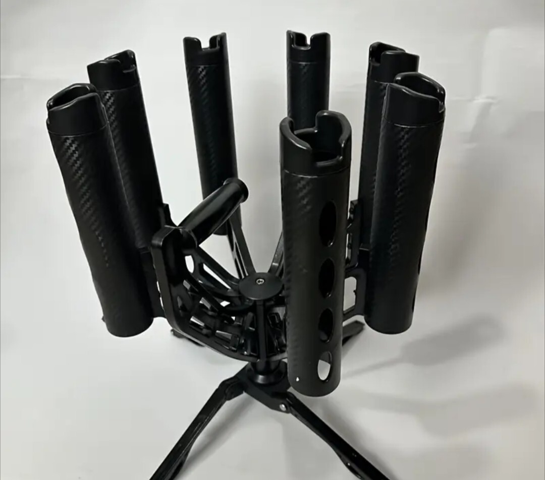 ロッドスタンド カーボン調 7本 回転式 ガトリング 検 ドライブ ロデオクラフト フォース ロッドホルダー エリア 管釣り