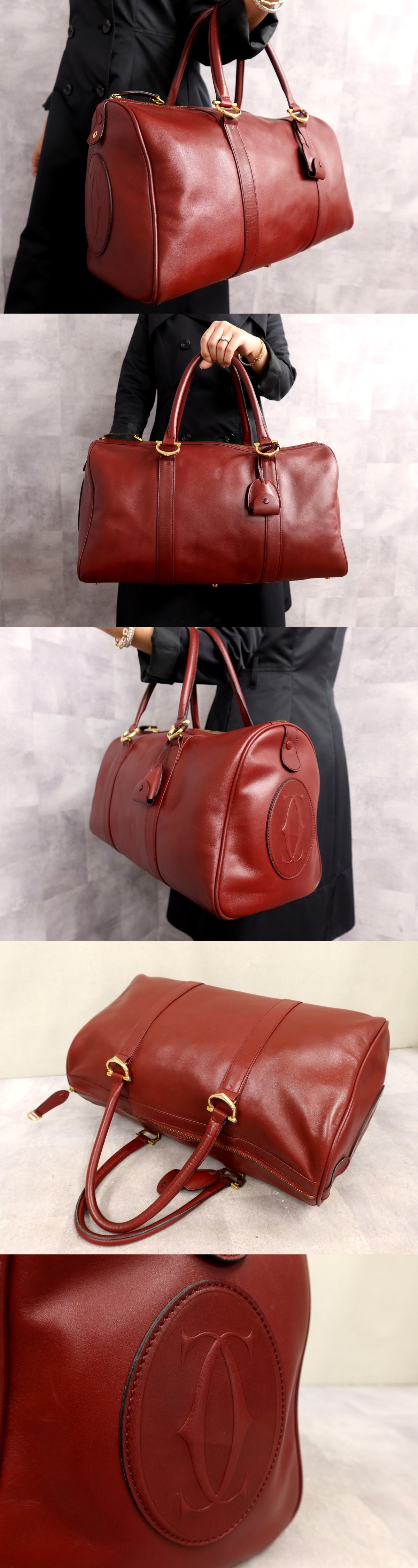 Store ●超美品●Cartier カルティエ●マスト●カーフ レザー 本革●ボストン バッグ●ボルドー●ゴールド金具●腕掛け●収納 かばん●Js64363