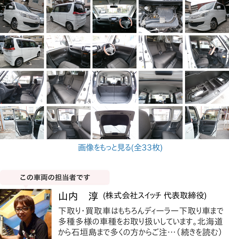 走行距離は現走行距離を記載していますのでお渡しする時には異な りますので予めご了承ください。(陸送や検査受けをする場合等はとくに)