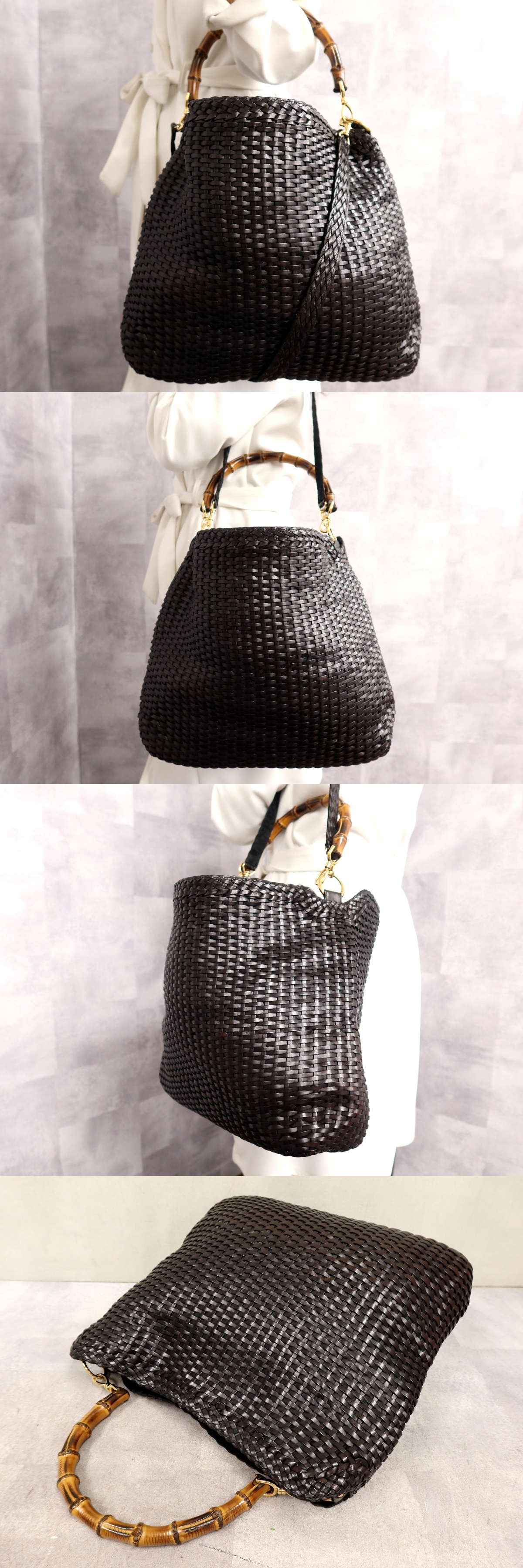 Product name: ●超美品●GUCCI グッチ●バンブー●編み込み●カーフ レザー 本革●2way トート バッグ●黒●ゴールド金具●イタリア製●A4 収納●Js64412