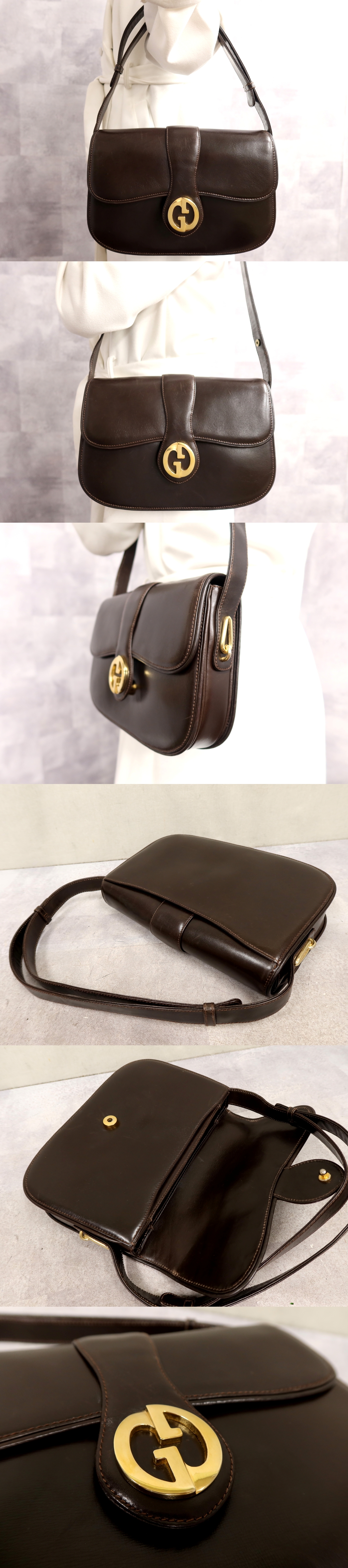 Store ●超美品●GUCCI オールド グッチ●カーフ レザー 本革●ショルダー バッグ●ブラウン●ゴールド金具●イタリア製●ヴィンテージ●Js64533