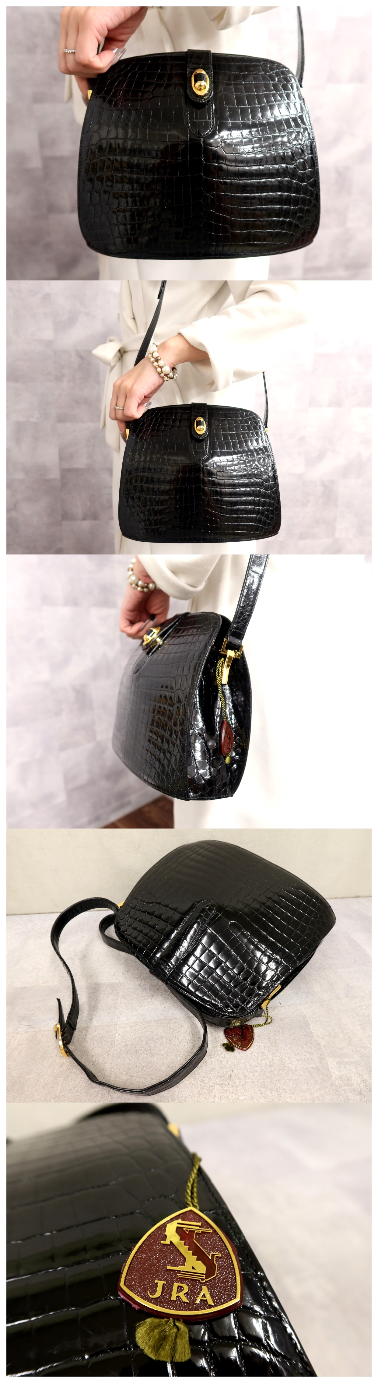 JRA 認定 シャイニング クロコダイル ショルダー バッグ