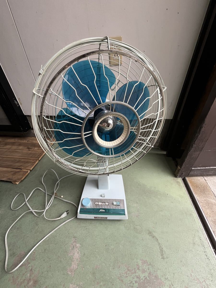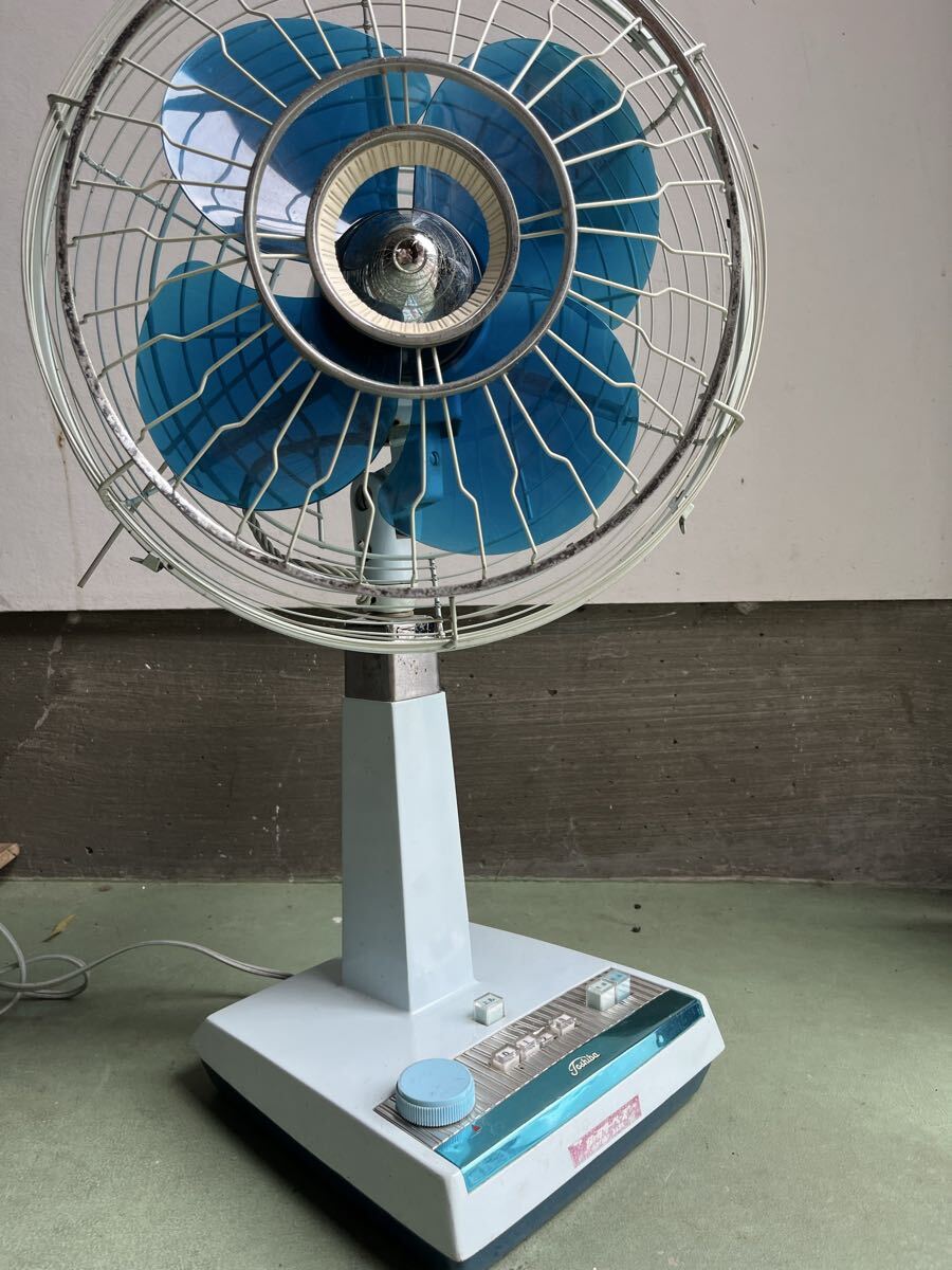 実家で使用していたものです。首振を制御するワイヤーが切れており、首振りオンの状態です。