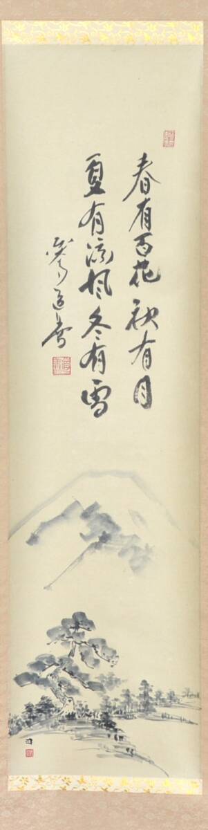Product name: 82◆初荷です ◆掛軸 華厳宗管長 東大寺長老 上野道善賛 富士山画(近藤司) 紙本 真作 ◆共箱 茶掛