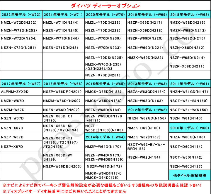 一部ダイハツ車でパーキング警告が表示される場合がございますナビ側で解除設定を行ってください(機種毎の取説を確認)