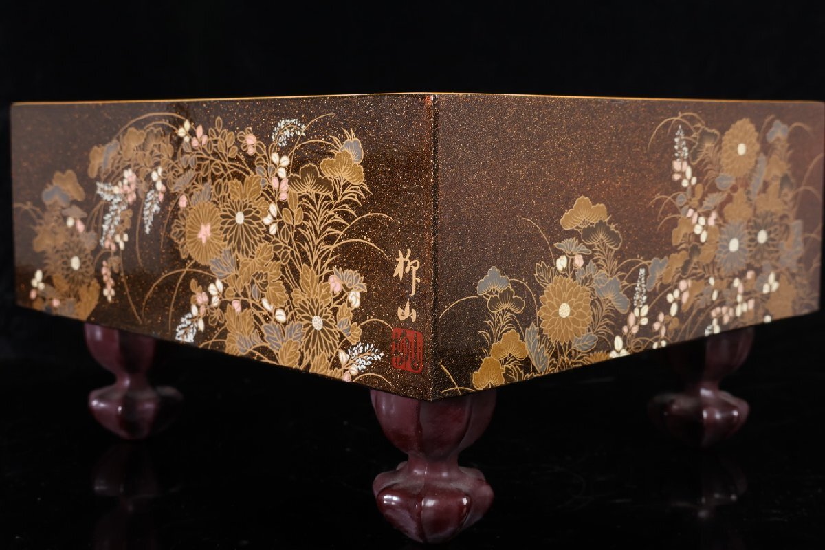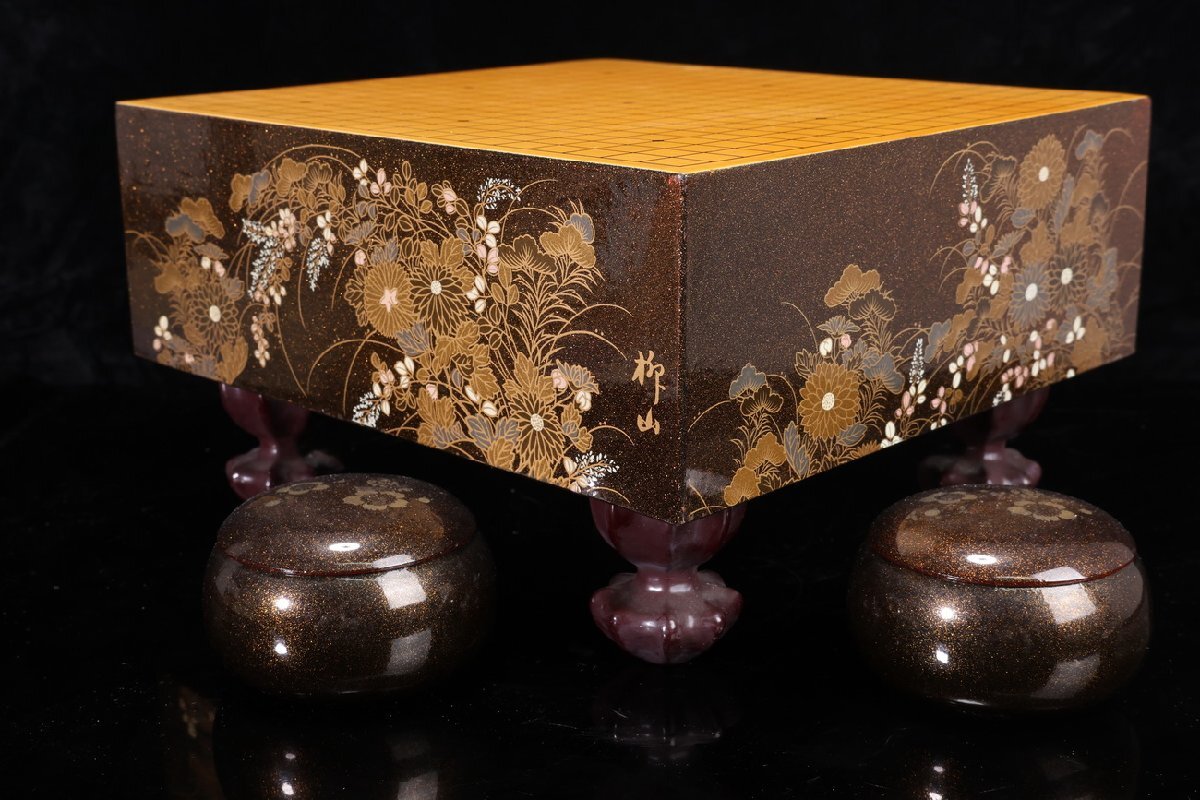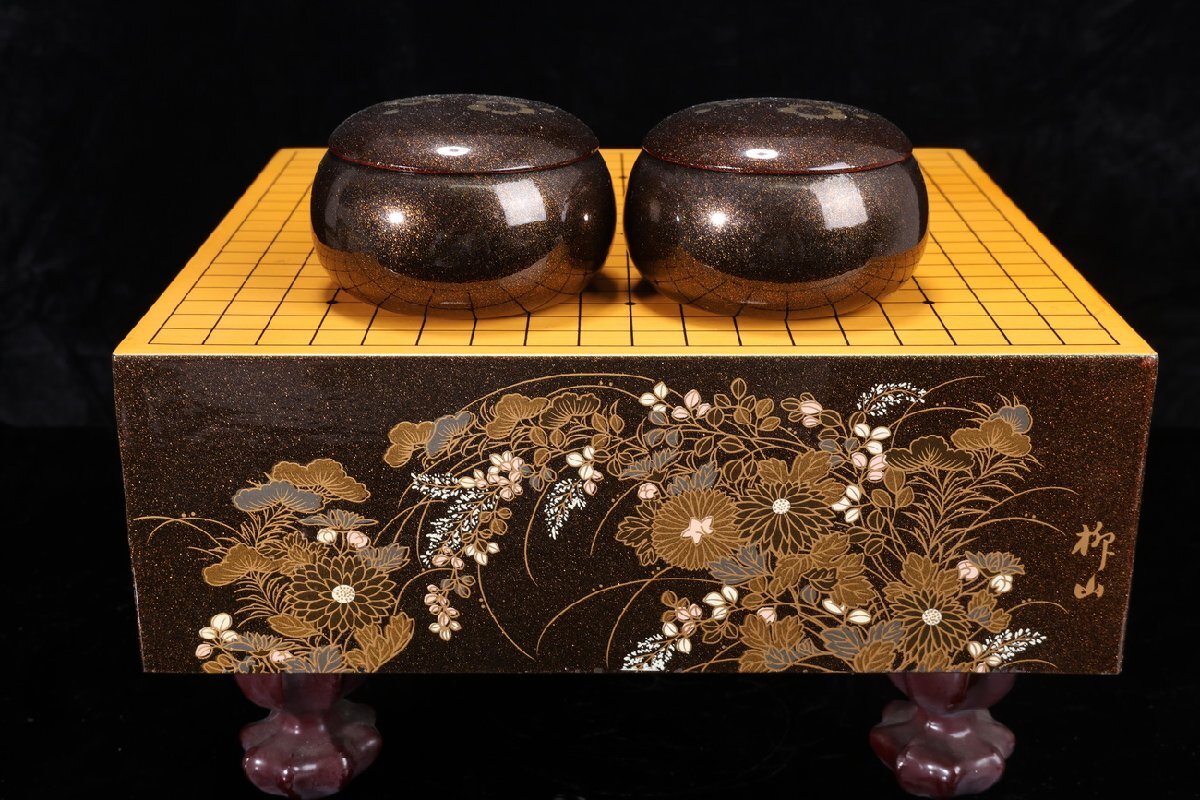 Product name: 【珍品堂】1円から V23-V9 漆芸 碁盤 柳山作 金蒔絵 ミニチュア 囲碁 碁盤 囲碁 盤高13cm 日本伝統工芸 時代物 古美術