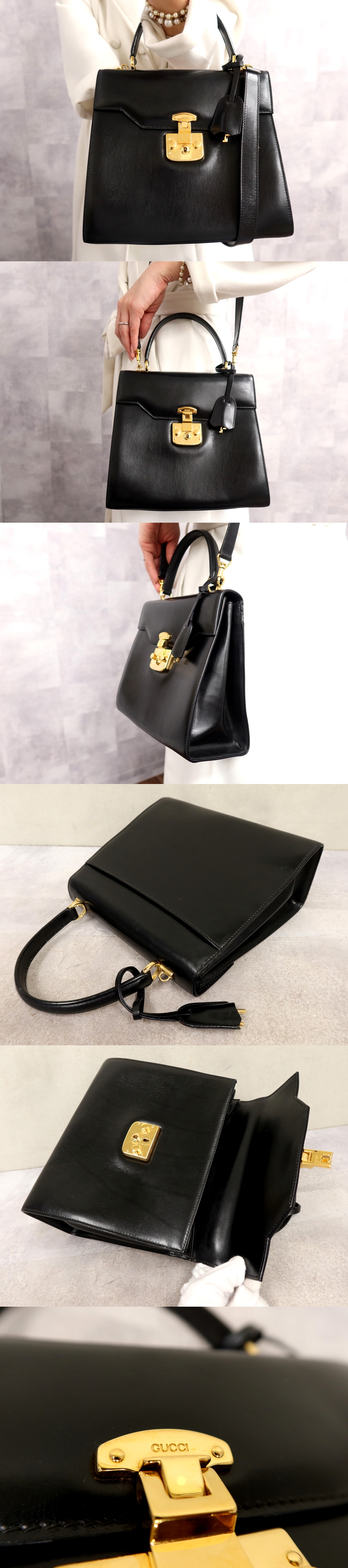 Product name: ●超美品●GUCCI グッチ●レディロック●カーフ レザー 本革●2way ハンド バッグ●黒●ゴールド金具●腕掛け●イタリア製●収納●Js64980