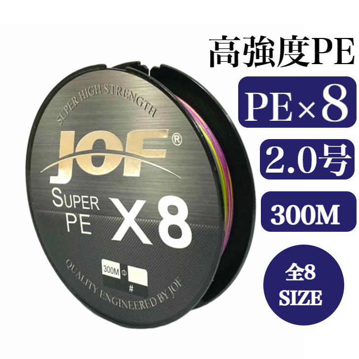 ☆ JOF PEライン2.0号 300m 8本編み マルチカラー ☆