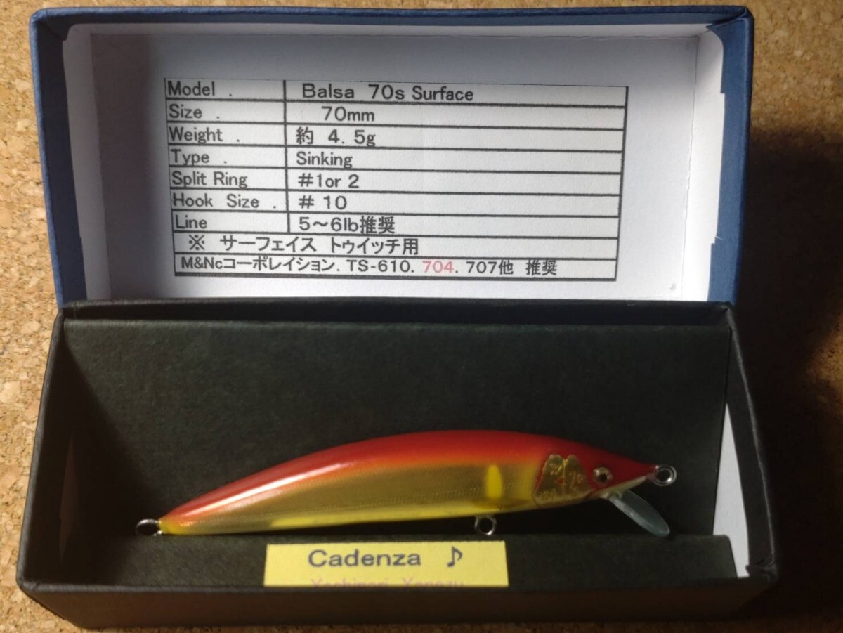 Product name: cadenza カデンツァ 70S.surface ハンドメイドミノー