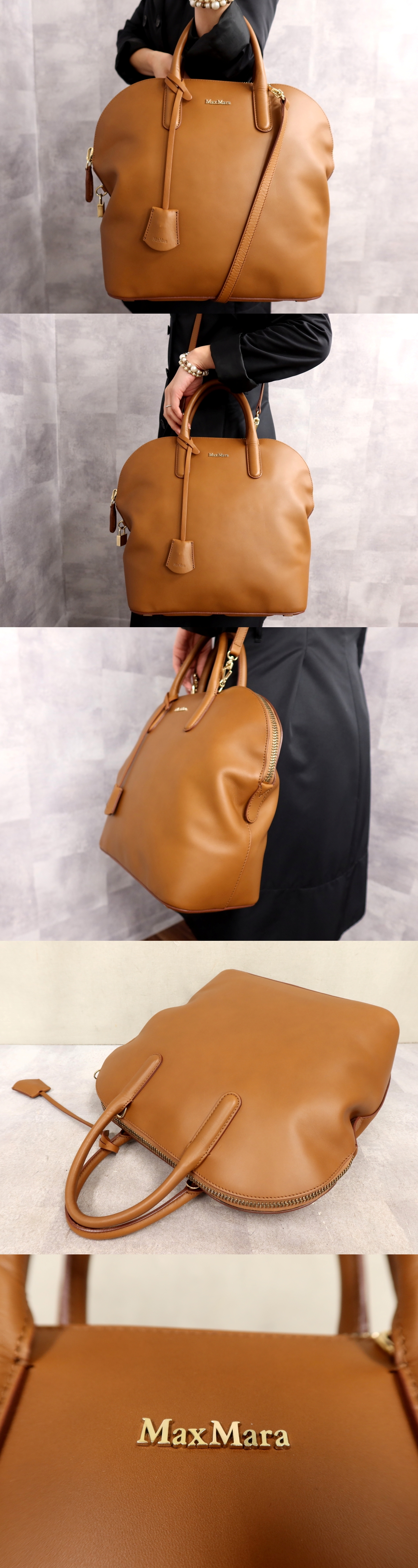 Store ●超美品●Max Mara マックスマーラ●カーフ レザー 本革●2way ハンド バッグ●キャメル●ゴールド金具●腕掛け●A4 収納 かばん●Js64449