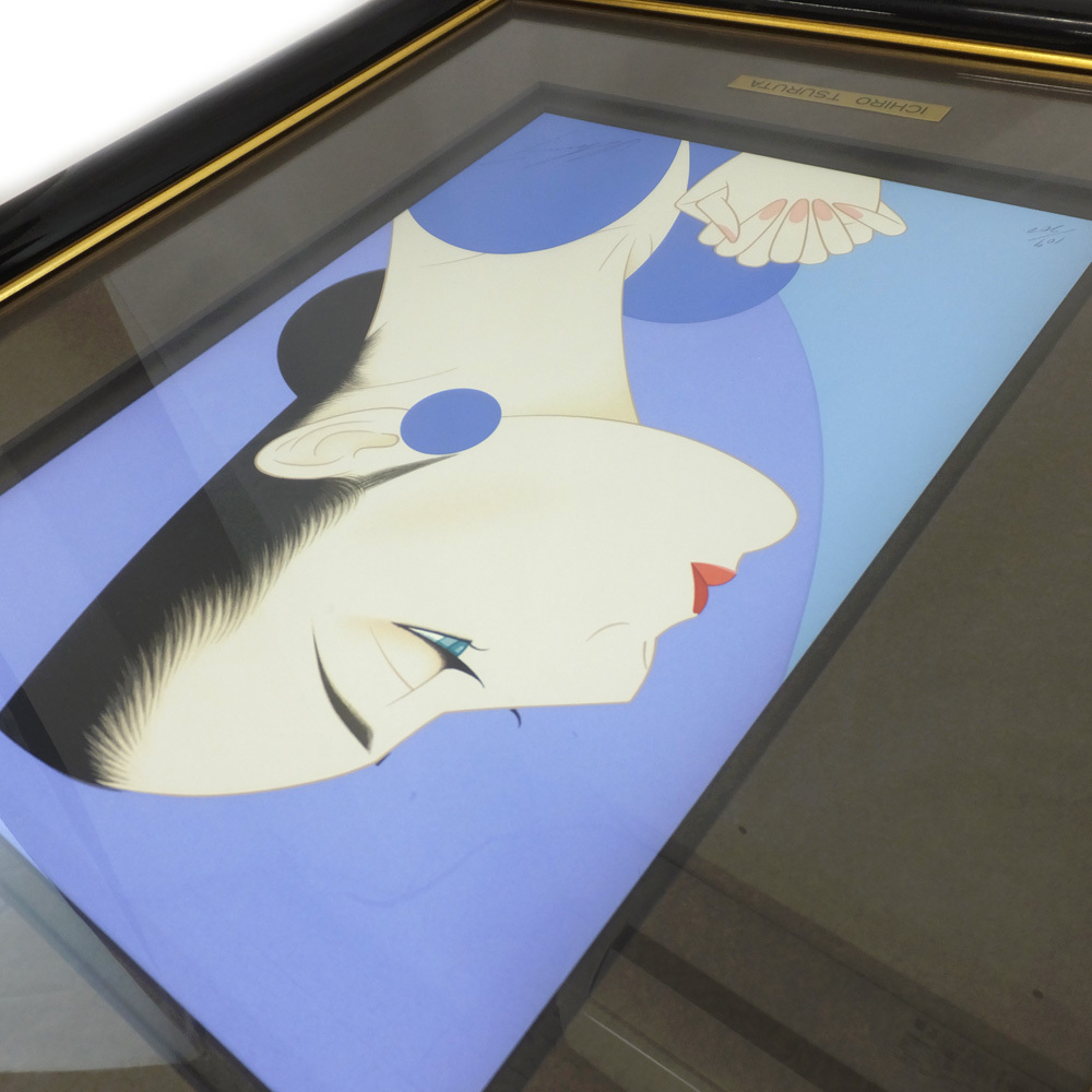 Product name: 【天白】鶴田一郎 ディスティネイション ブルー 絵画 女性モチーフ 人物画 美人画 美術品 ブラック 額縁付き