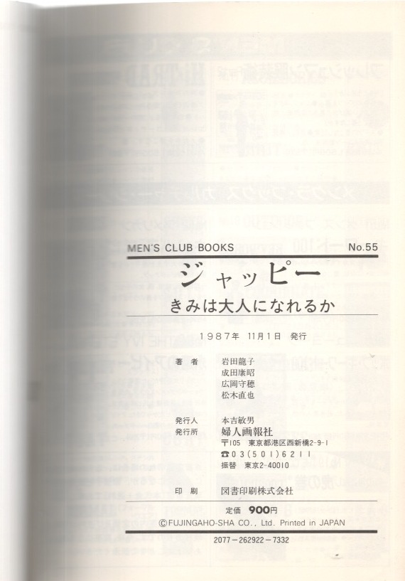 MEN'S CLUB BOOKS-55「ジャッピー きみは大人になれるか」1987年発行★岩田龍子/成田康昭/広岡守穂/松木直也:共著★JUPPIE=japan+yuppie