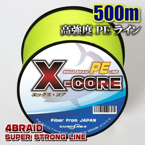 PEライン■1.2号20lb・X-CORE 500m巻き イエロー黄 単色 シーバス 投げ釣り ジギング 送料無料 エギング タイラバ