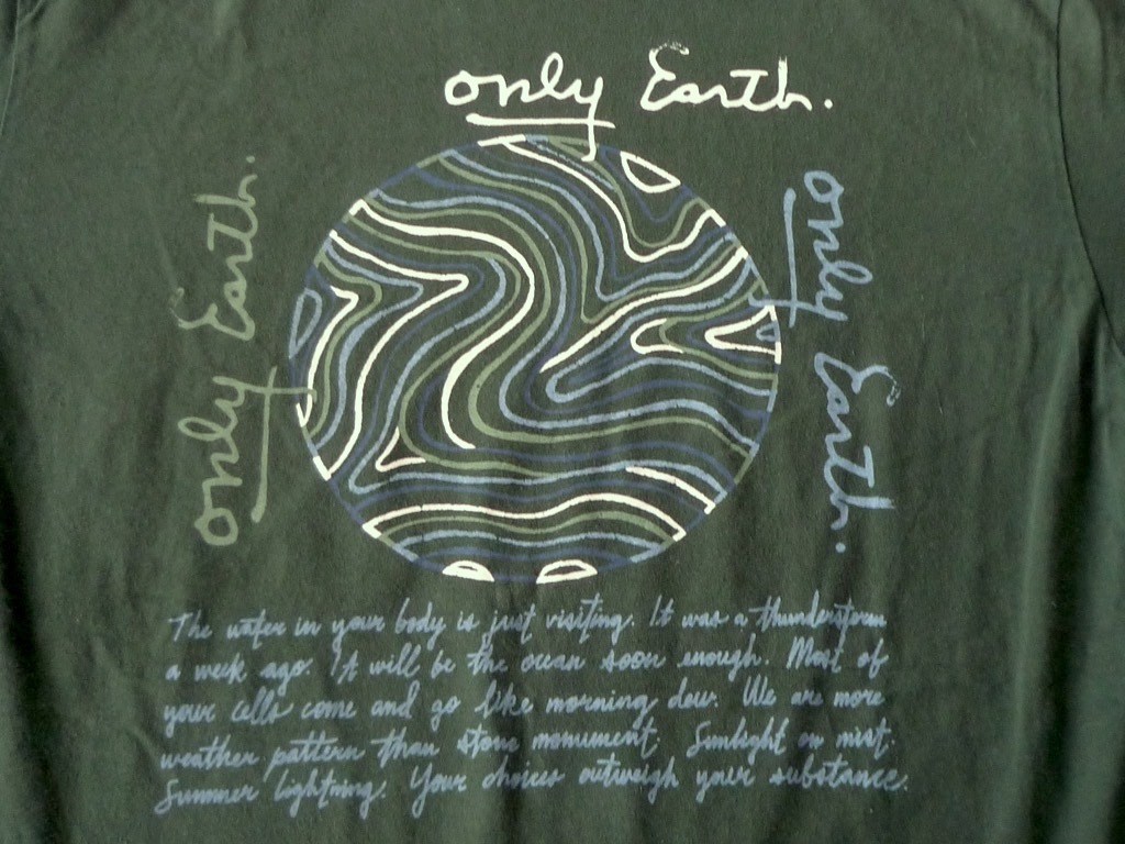 オーガニックコットンを使用したこのTシャツは、一般的なコットン製Tシャツに比べて水の使用量を84%、二酸化炭素の排出量を16%削減。フェアトレード・サーティファイドの工場で製造