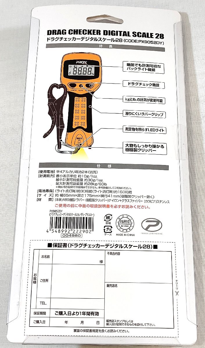 Product name: プロックス ドラグチェッカーデジタルスケール28 ディープイエロー PX9052DY