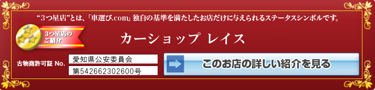 “3つ星店”とは「車選びドットコム」独自の基準を満たした販売店だけに与えられるステータスシンボルです。