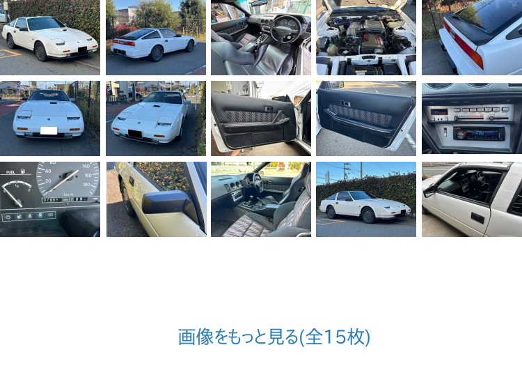 2シーターのマニュアル5速、ノーマル車です。過去にインタークーラーを取り付けていた跡は隠しています。純正リアスポイラー、純正マッドガード(本体のみ)、柿本マフラー、レカロシート(運転席のみ)付き。300ZR用純正15インチアルミが付いています。(ノーマルはオフセット40ですが、オフセット20の300ZR用)。社外オーディオはBluetoothオーディオです。アンテナもちゃんと伸びます。Tバールーフからの雨漏れありません。