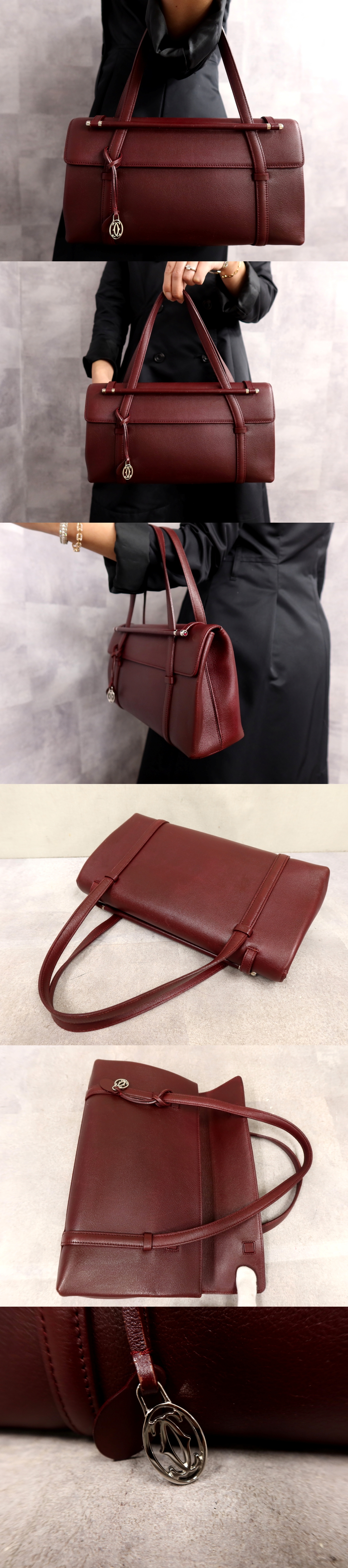 Product name: ●超美品●Cartier カルティエ●カボション●カーフ レザー 本革●ハンド バッグ●ボルドー●シルバー金具●腕掛け●収納 かばん●Js64371