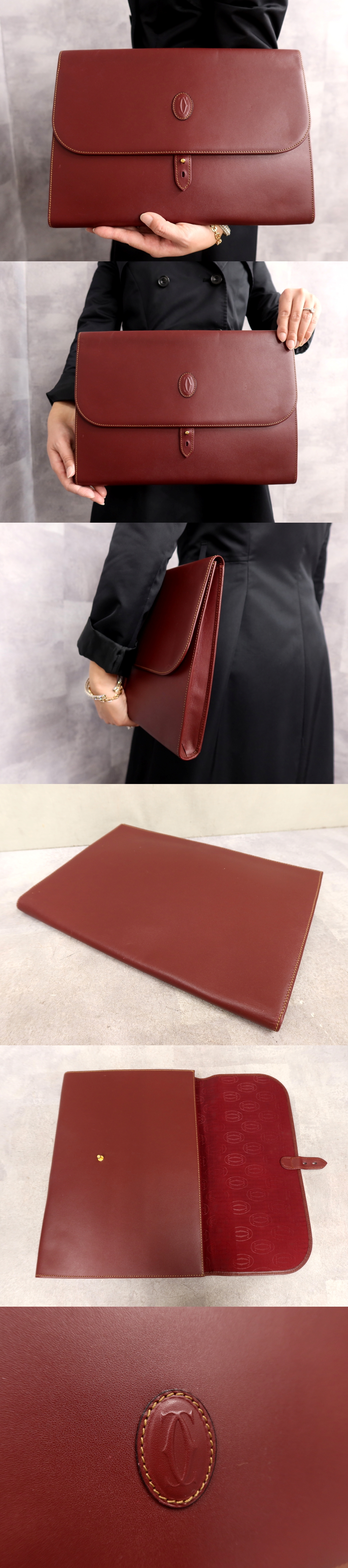 Store ●超美品●Cartier カルティエ●マスト●カーフ レザー 本革●セカンド クラッチ バッグ●ボルドー●ゴールド金具●収納 かばん●Js64359