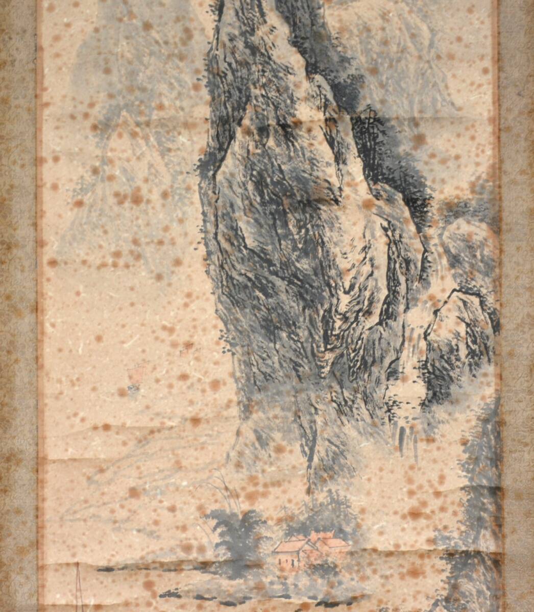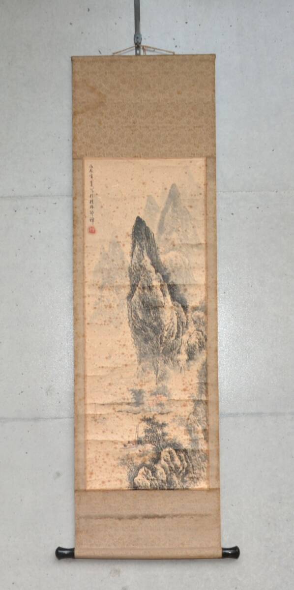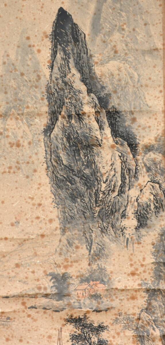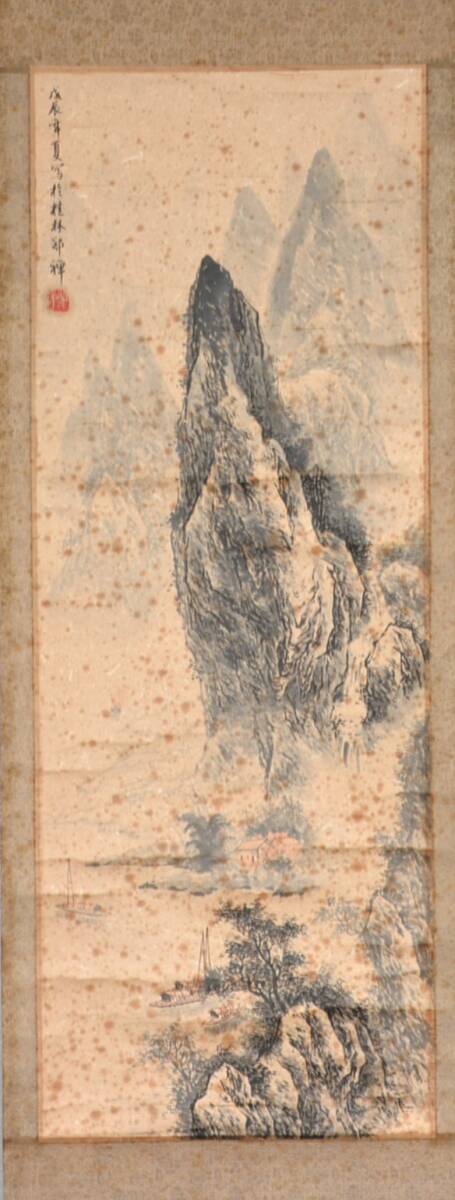【模写】 83◆初荷です ◆掛軸 中国 邨禅 桂林於 水墨山水図 紙本 唐物