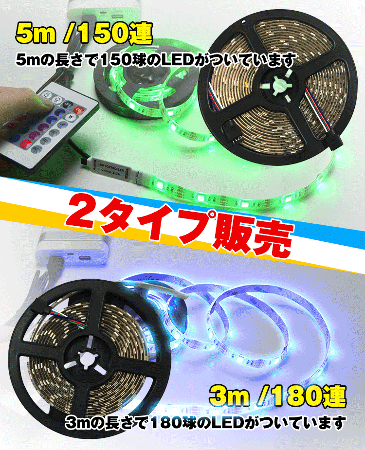 Product name: 送料無料 ledテープライト 間接照明 車 5m 防水 3m リモコン付き usb電源対応 150連 180連 16色 正面発光 看板照明 イルミネーション sl032