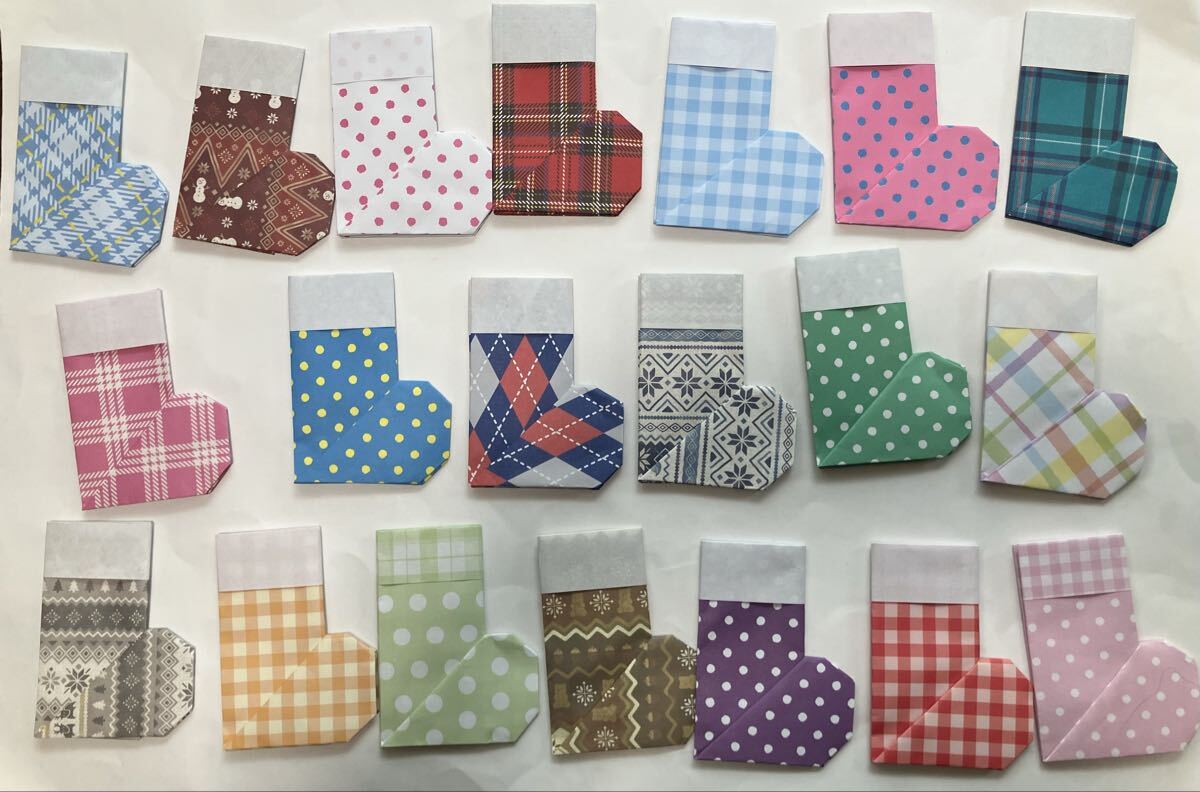 ハンドメイド 折り紙 クリスマス ブーツ 20個 壁面飾り 幼稚園 施設 保育園 プレゼント