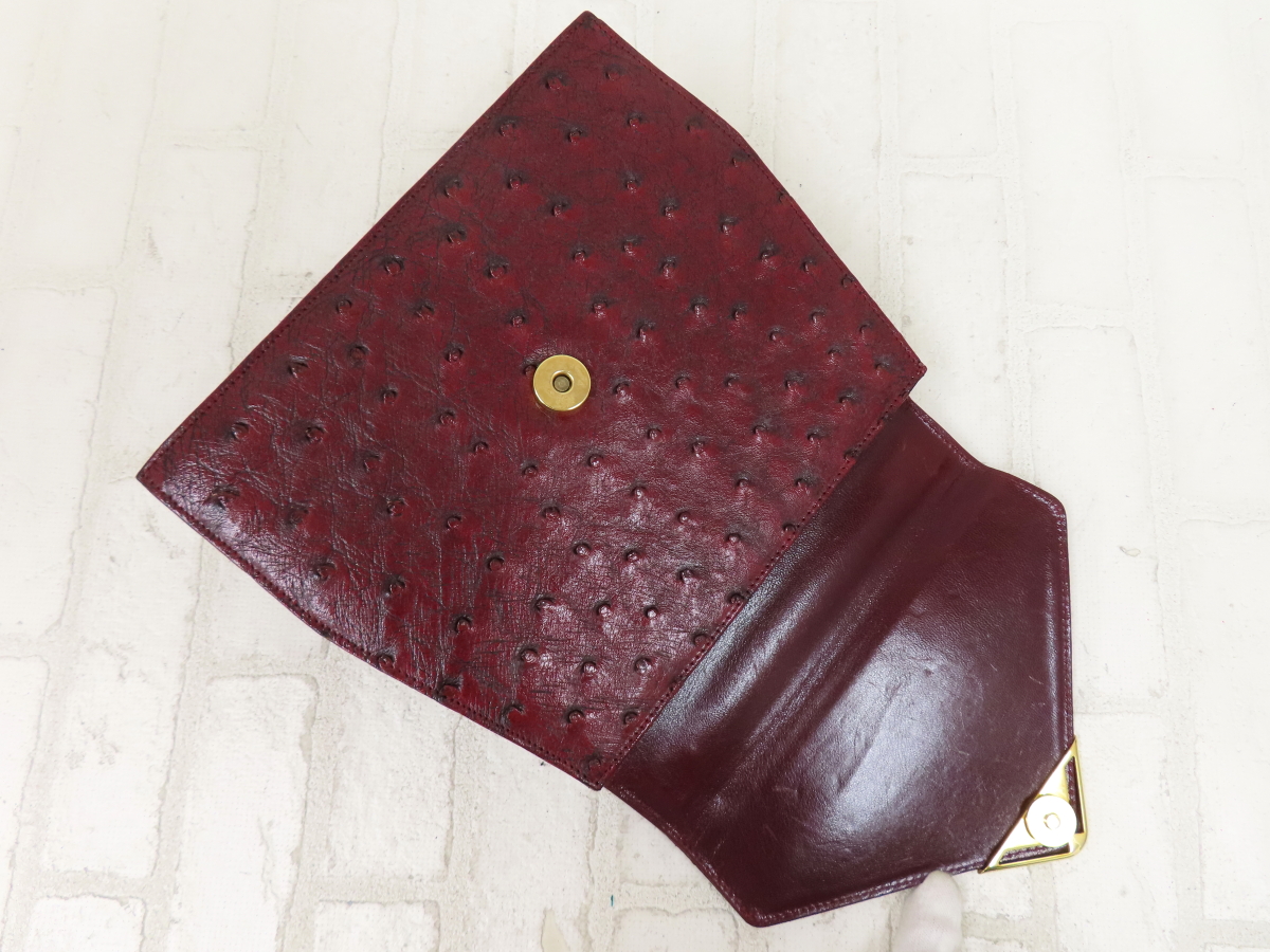 Store ◆超美品◆GENUINE◆オーストリッチ リザード 本 だちょう トカゲ 革◆ハンド バッグ チェーンショルダー◆ボルドー ゴールド金具◆A15290