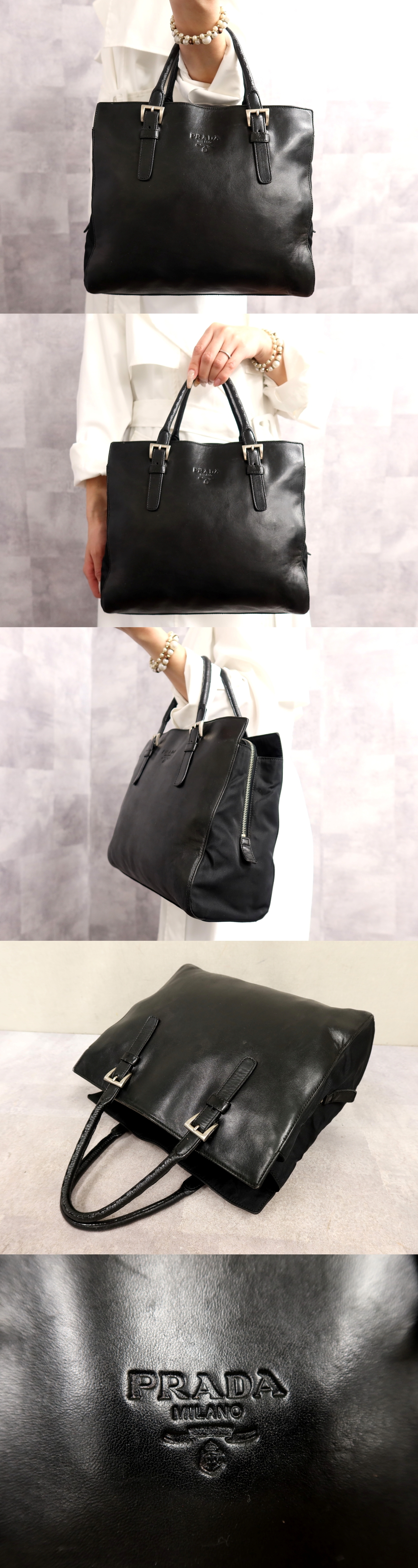 Store ●超美品●PRADA プラダ●ポコノ ナイロン カーフ レザー 本革●トート ハンド バッグ●黒●SV金具●腕掛け●ヴィンテージ●B5●Js66608