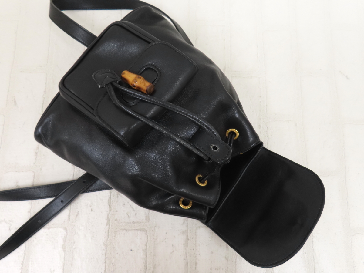 Store ◆GUCCI グッチ◆バンブー◆カーフ レザー 本革◆ミニ バッグ リュック サック バックパック◆ブラック ゴールド金具◆イタリア製◆A15163