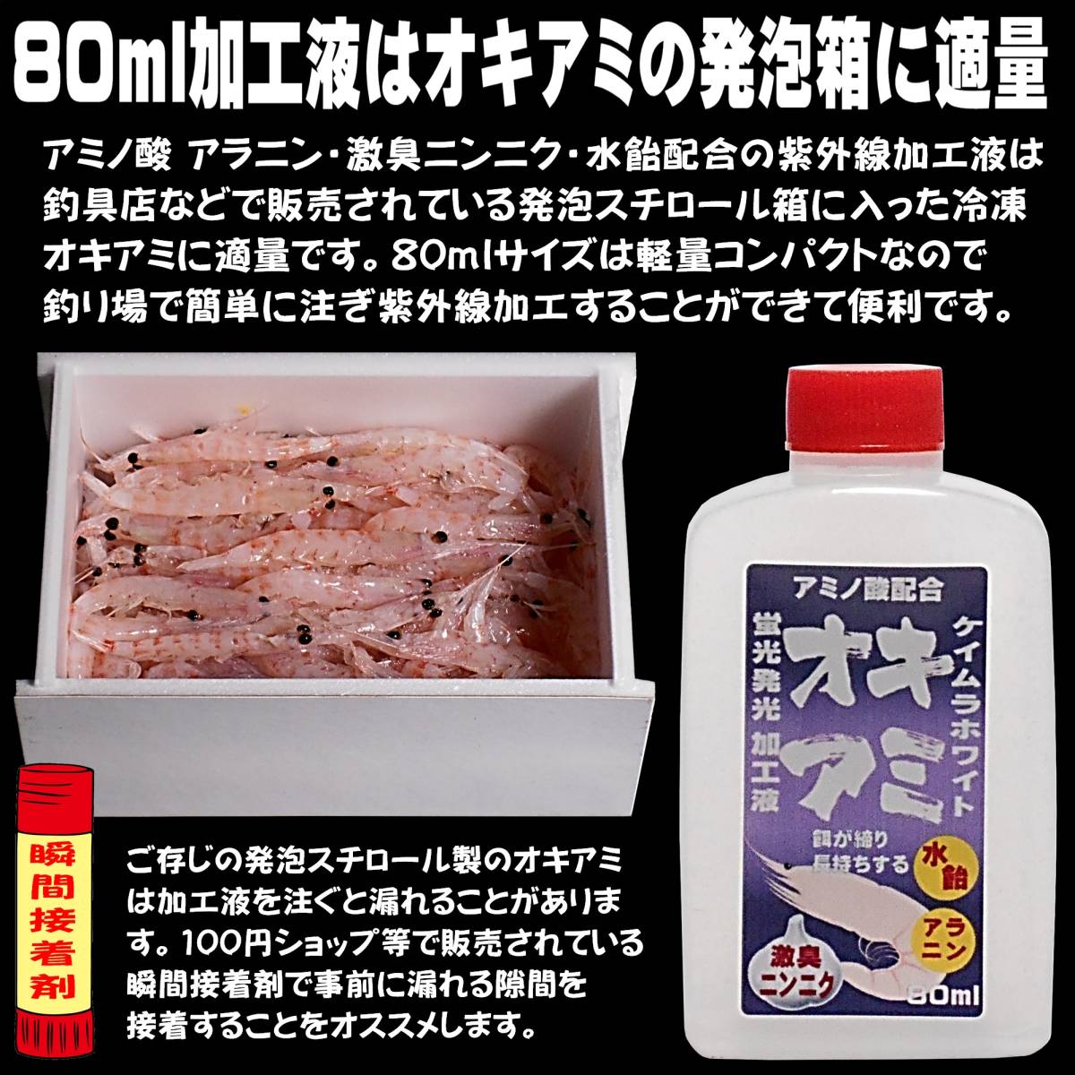 冷凍オキアミ 集魚剤 釣り餌 刺し餌用 アミノ酸 アラニン にんにく 水飴 餌締め塩 配合 紫外線加工液 ケイムラホワイト クリア 80ml