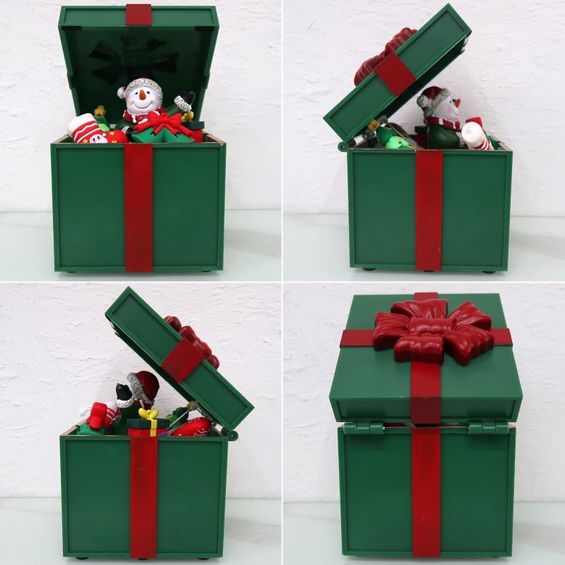 電源を入れると、楽しいクリスマスソングが流れ、プレゼントボックスが自動で開閉!