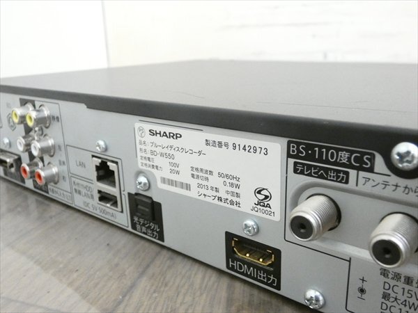 Product name: 500GB☆13年☆シャープ/SHARP/AQUOS☆HDD/BDレコーダー☆BD-W550☆リモコン付☆2番組同時録画☆3D対応機 管SA9052