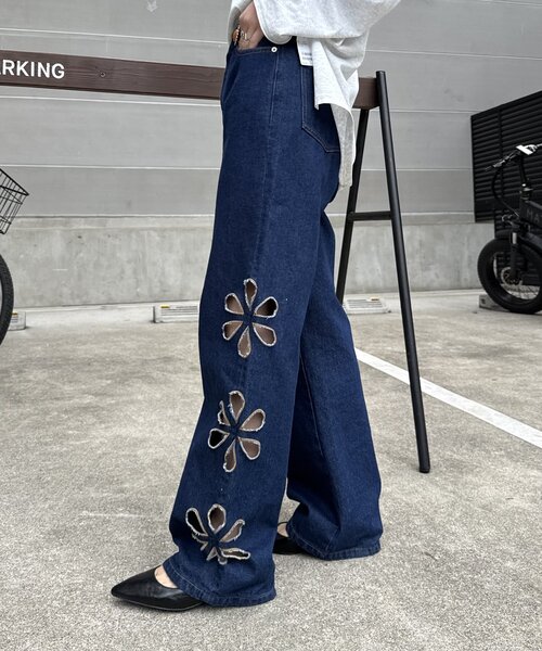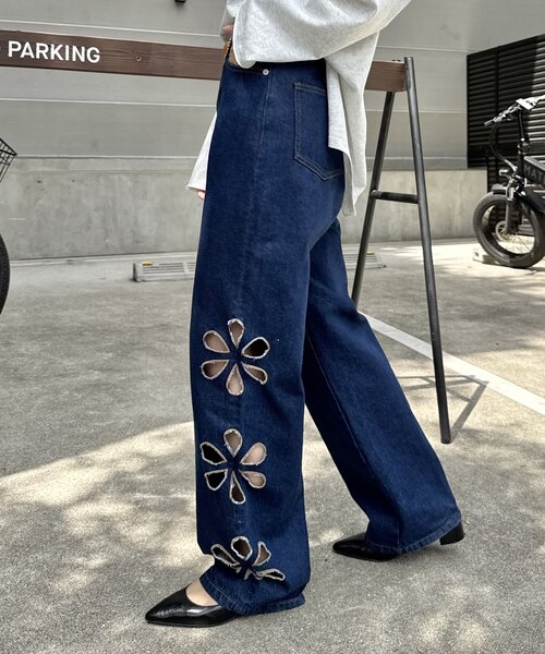 参考商品名:【HELLO.SANFRANCISCO】フラワーカットアウトデニムパンツ