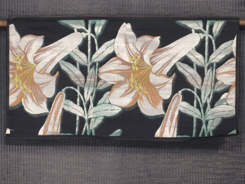 ★【古布】百合文 西陣織 錦織 丸帯 はぎれ ハギレ アンティーク 37×70 TAOL06003風楽