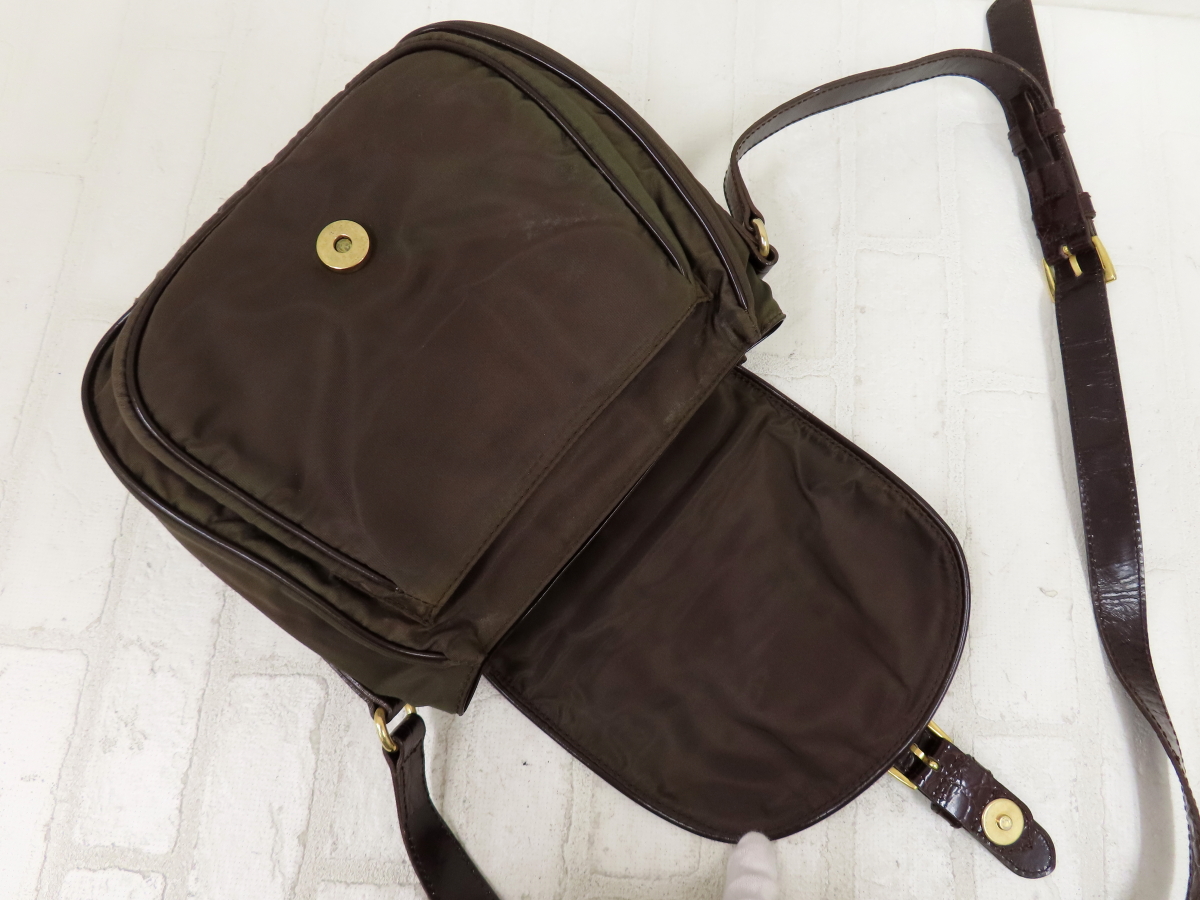 Store ◆美品◆PRADA プラダ◆ナイロン クロコ型押し レザー 本革◆ショルダー バッグ◆ブラウン ゴールド金具◆イタリア製◆斜め掛け◆A15200