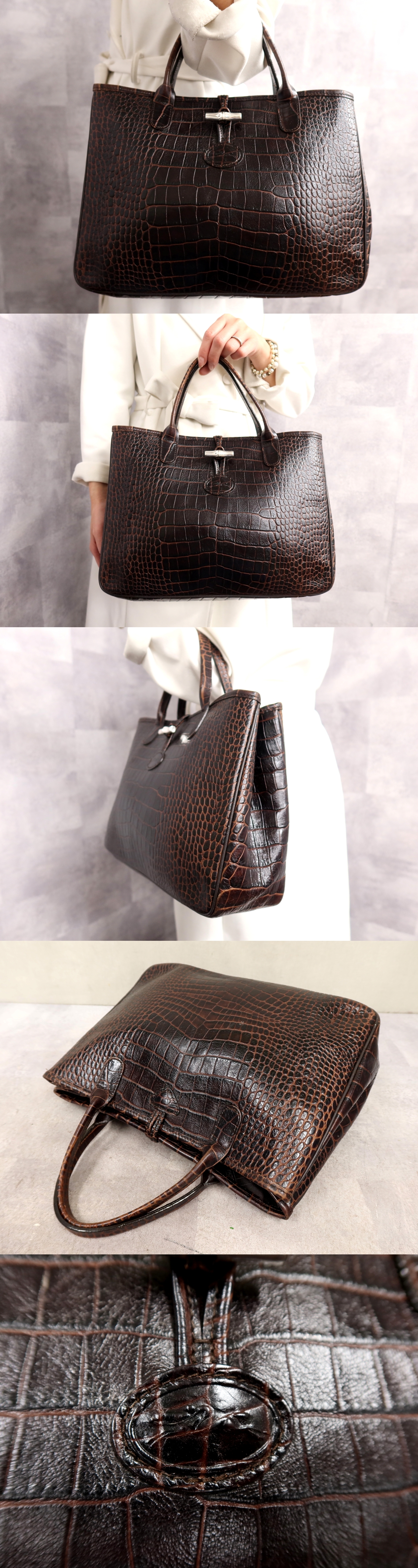 Product name: ●超美品●Longchamp ロンシャン●ロゾ●クロコダイル 型押し カーフ レザー 本革●ハンド トート バッグ●ブラウン●SV金具●A4●Js64403
