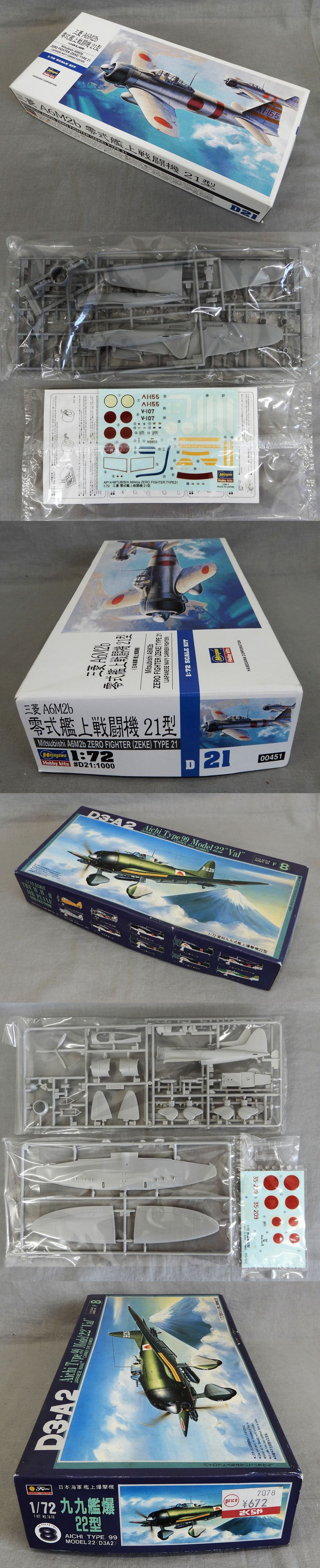 Product name: 【未組立/箱入り】 三菱 A6M2b 零式艦上戦闘機 21型 1:72 Hasegawa プラモデル 他 計9点